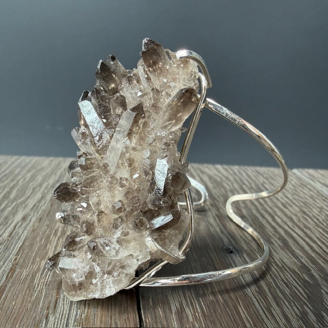 Naturally beautiful and just killer, smoky quartz, a grounding stone, assisting with calming negative emotions, prong set on adjustable cuff.