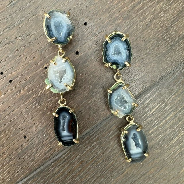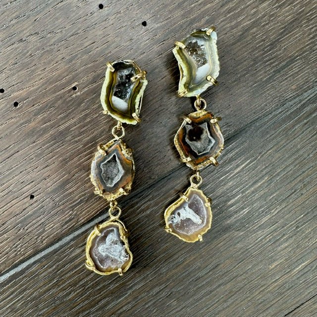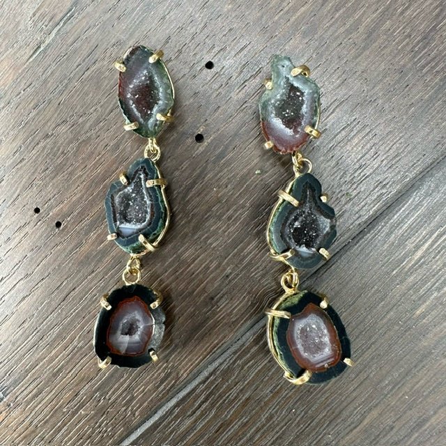 Triple Geode Earring - Gold Tone