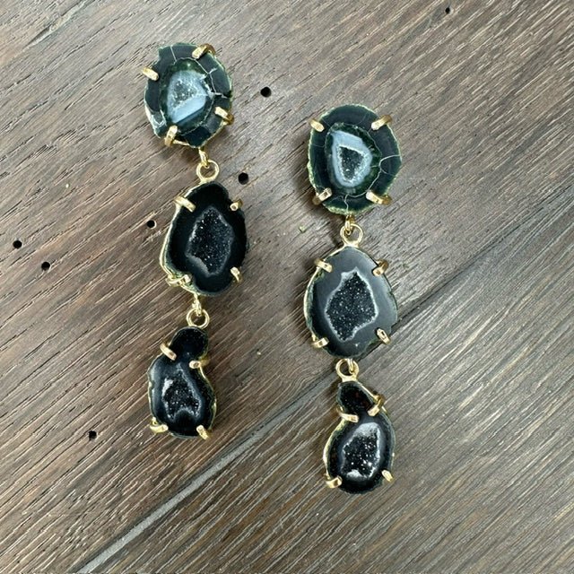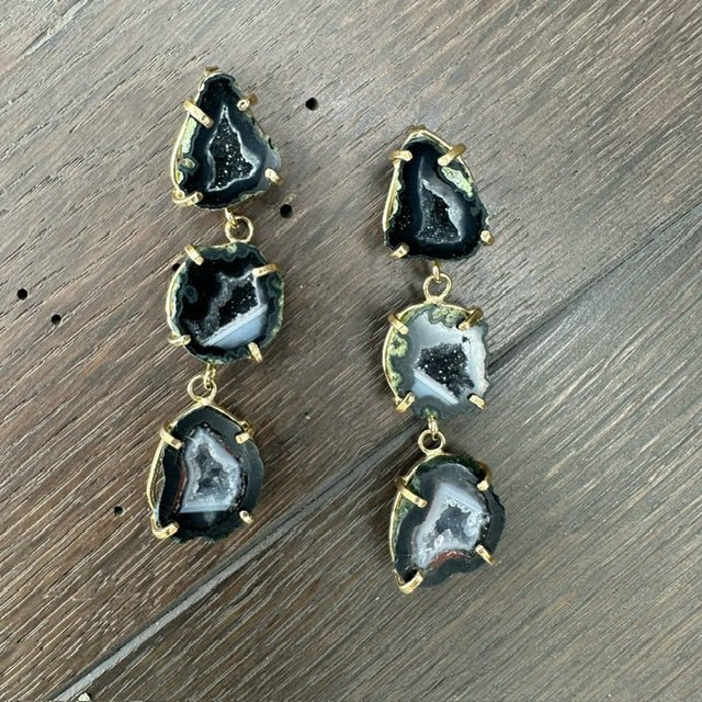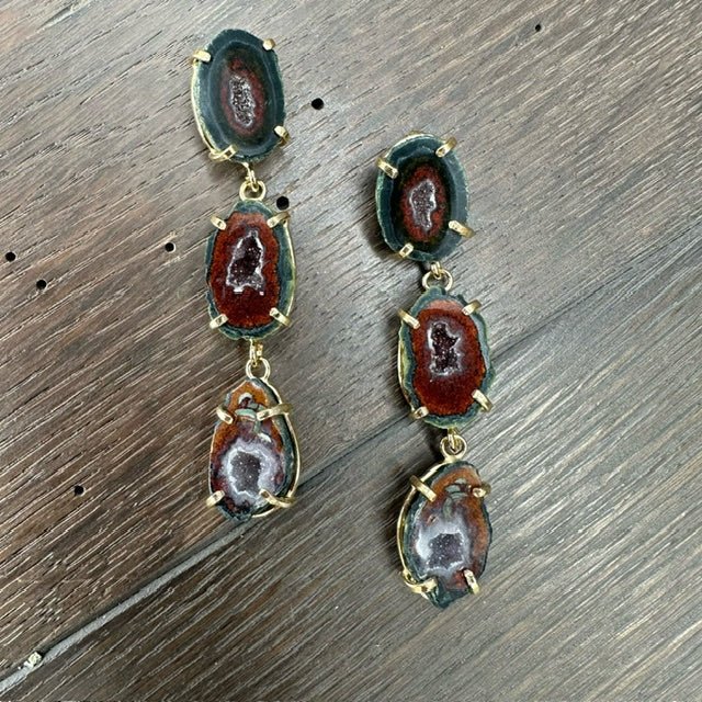 Absolutely incredible, triple tiny prong set oco geodes in these fabulous earrings. One of a kind gorgeousness!