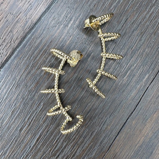 Edgy and modern ear climber cuff in brass with stainless posts.