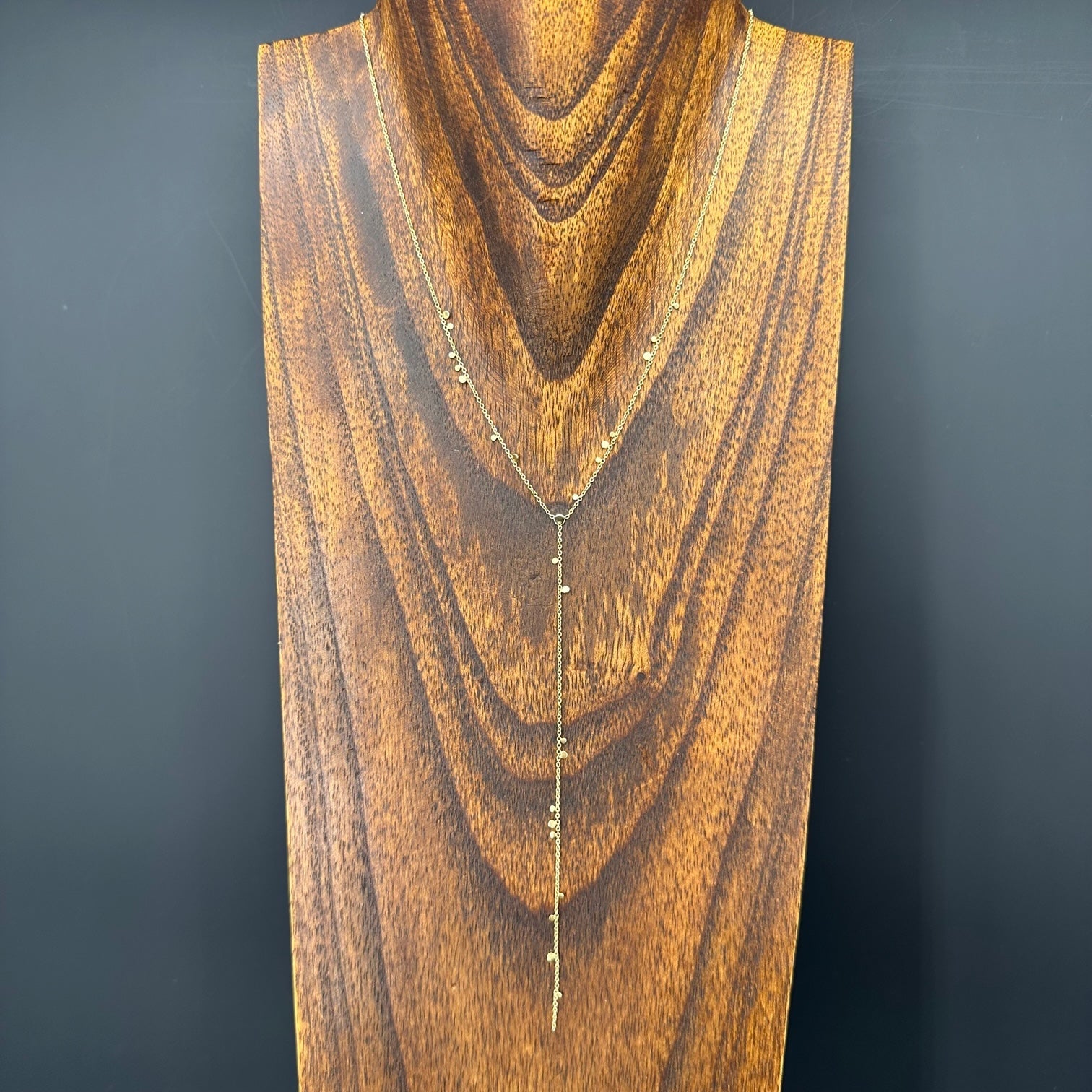 Tiny gold vermeil rounds dabbled through and dangle from this dainty chain… a gorgeous, y style necklace that is beyond unique.