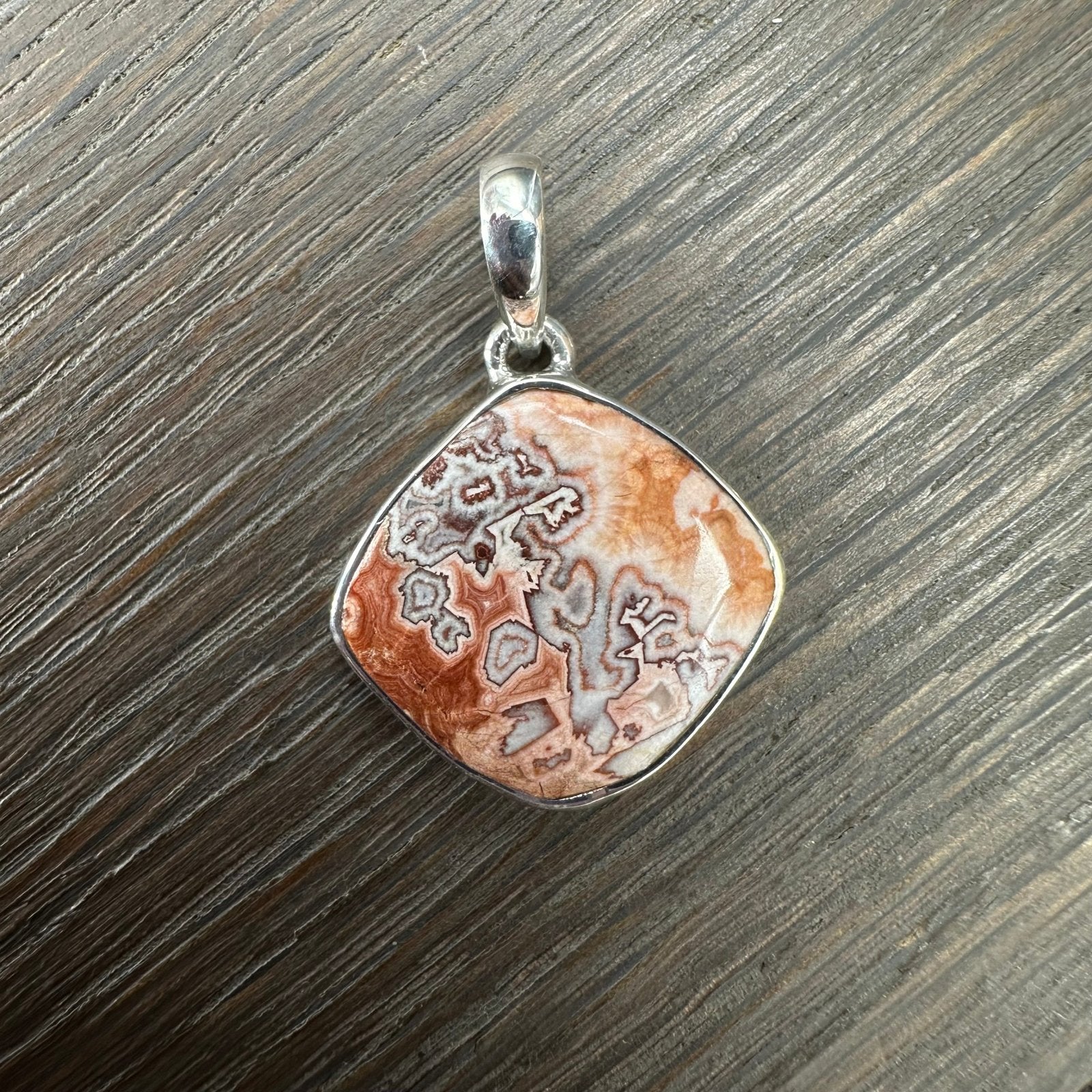 Incredibly cool and unique, Rosetta jasper bezel set in sterling silver on 18” sterling silver chain.