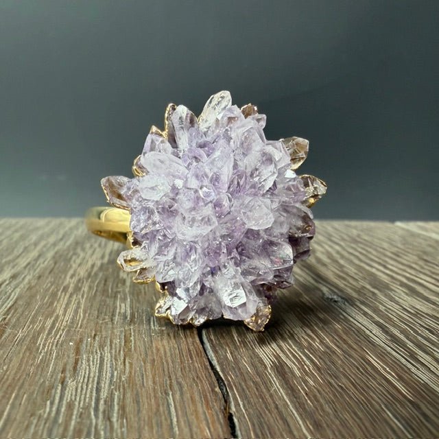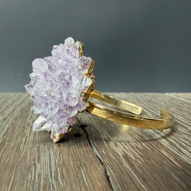 STUNNING Amethyst Rose crystal puff bracelet on an adjustable gold dipped single band.