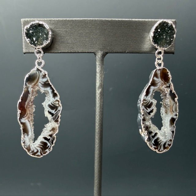 Geode druzy combo earring - silver