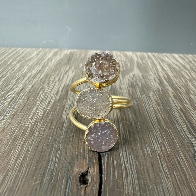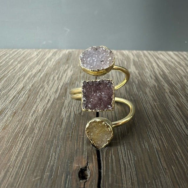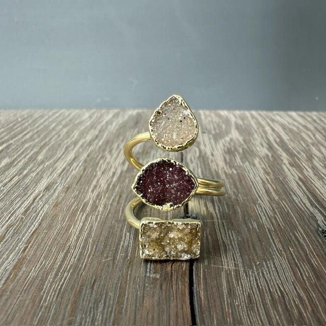 Triple Geometric Druzy Ring - Gold Tone