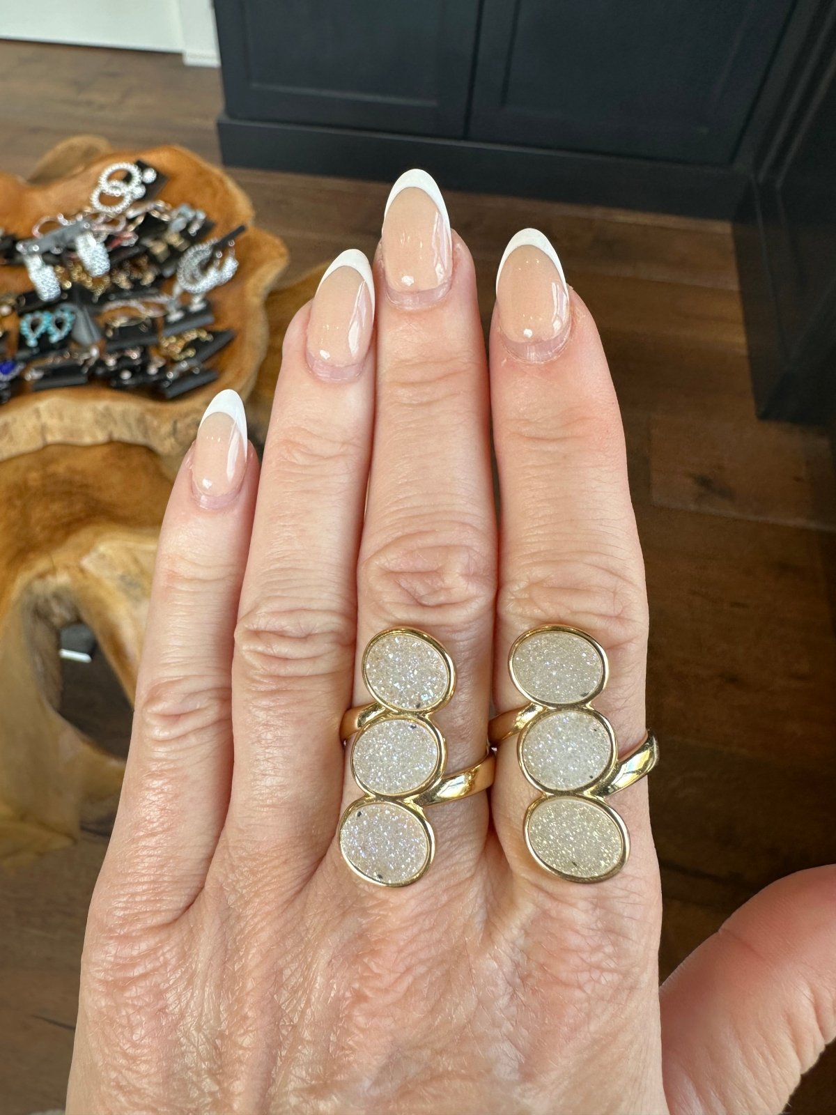 Three stone Angel aura druzy ring - gold